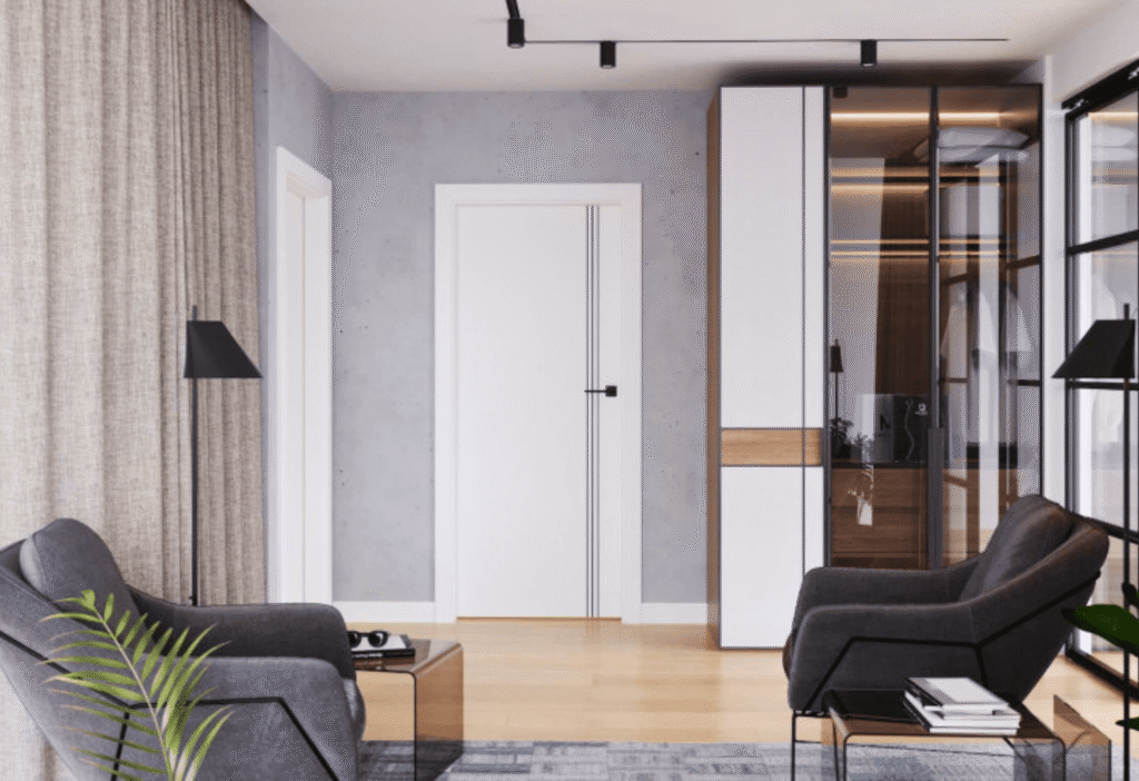• Porta HIDE: Ukryta ościeżnica dla fanów absolutnego minimalizmu – skrzydło niemal niewidoczne na tle ściany.